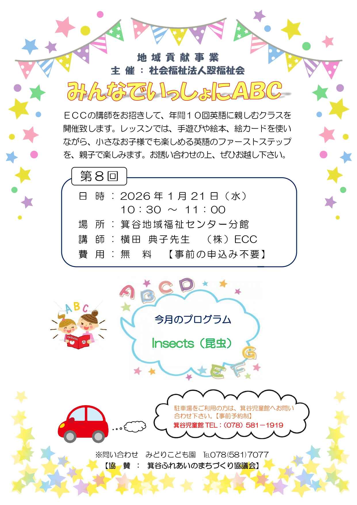 みんなで一緒にABC 令和7年度 1月みんなで一緒にABCのご案内 2025年12月11日 地域貢献事業の一環として、ECCの課外レッスンを無料で実施しています。 ご参加お待ちしています。 R7年度 1月みんなで一緒にABC カテゴリーを選択 未分類 (1) お知らせ (31) グリーンサロン (111) なかよく一緒に園庭遊び (28) みんなで一緒にABC (57) 先生と一緒に親子であそぼう (19) 選択してください 2025 (37) 2024 (37) 2023 (33) 2022 (33) 2021 (21) 2020 (16) 2019 (16) 2018 (9) 2017 (17) 2016 (10) 2014 (4) 2013 (2)