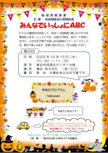 みんなで一緒にABC 令和7年度 10月みんなで一緒にABCのご案内 2025年09月29日 地域貢献事業の一環として、ECCの課外レッスンを無料で実施しています。 ご参加お待ちしています。 R7年度 10月みんなで一緒にABC カテゴリーを選択 未分類 (1) お知らせ (31) グリーンサロン (108) なかよく一緒に園庭遊び (25) みんなで一緒にABC (54) 先生と一緒に親子であそぼう (19) 選択してください 2025 (28) 2024 (37) 2023 (33) 2022 (33) 2021 (21) 2020 (16) 2019 (16) 2018 (9) 2017 (17) 2016 (10) 2014 (4) 2013 (2)