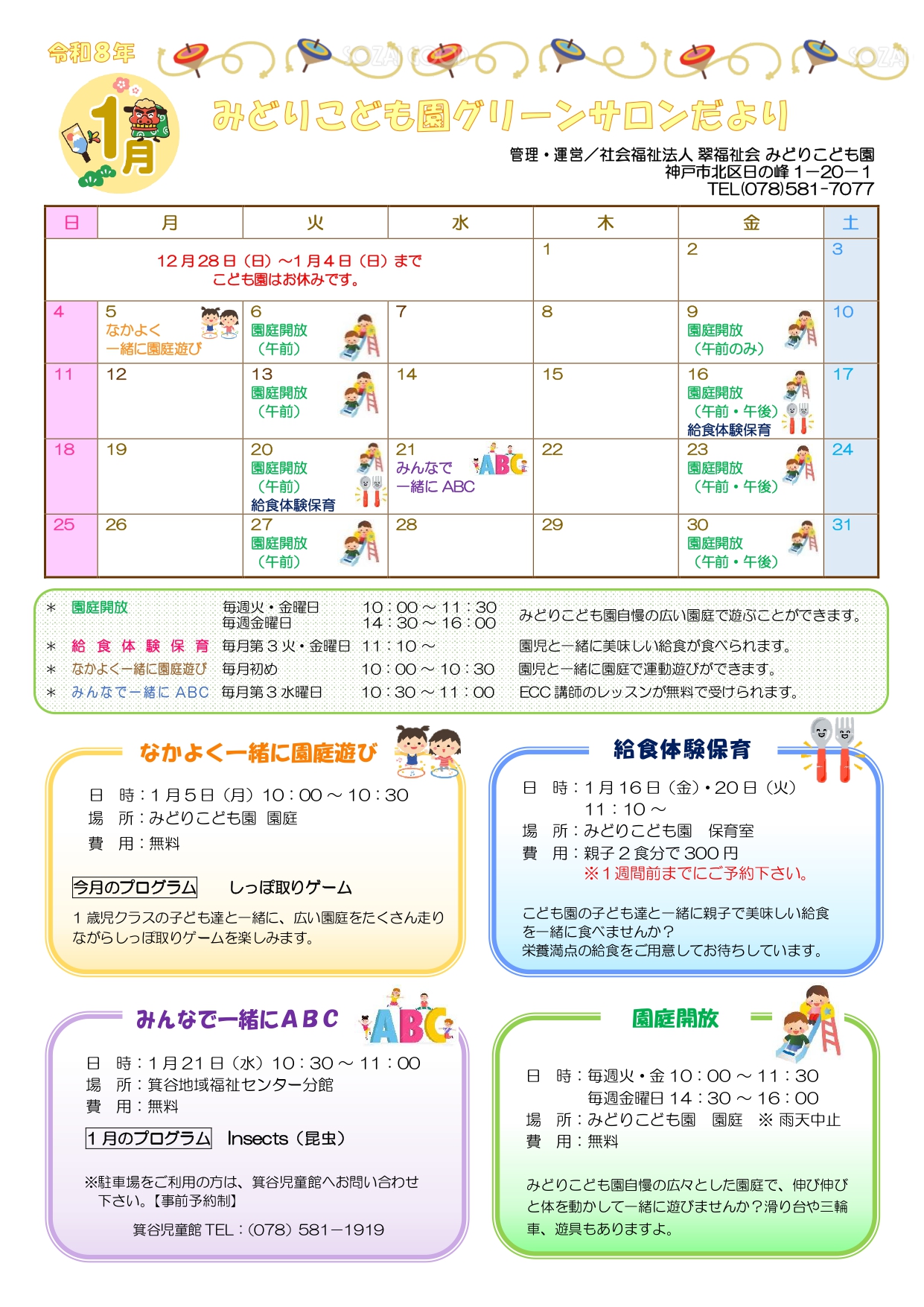 グリーンサロン 令和7年度 1月みどりこども園グリーンサロンだより 2025年12月11日 「令和7年度 1月みどりこども園グリーンサロンだより」を掲載しました。 R7年度 1月グリーンサロンだより カテゴリーを選択 未分類 (1) お知らせ (31) グリーンサロン (111) なかよく一緒に園庭遊び (28) みんなで一緒にABC (57) 先生と一緒に親子であそぼう (19) 選択してください 2025 (37) 2024 (37) 2023 (33) 2022 (33) 2021 (21) 2020 (16) 2019 (16) 2018 (9) 2017 (17) 2016 (10) 2014 (4) 2013 (2)