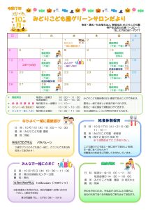 グリーンサロン 令和7年度 10月みどりこども園グリーンサロンだより 2025年09月29日 「令和7年度 10月みどりこども園グリーンサロンだより」を掲載しました。 R7年度 10月グリーンサロンだより カテゴリーを選択 未分類 (1) お知らせ (31) グリーンサロン (108) なかよく一緒に園庭遊び (25) みんなで一緒にABC (54) 先生と一緒に親子であそぼう (19) 選択してください 2025 (28) 2024 (37) 2023 (33) 2022 (33) 2021 (21) 2020 (16) 2019 (16) 2018 (9) 2017 (17) 2016 (10) 2014 (4) 2013 (2)