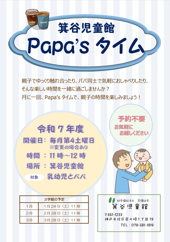 令和7年度3学期「Mom’sタイム」「Papa’sタイム」「マタニteaタイム」のお知らせを掲載しました。
