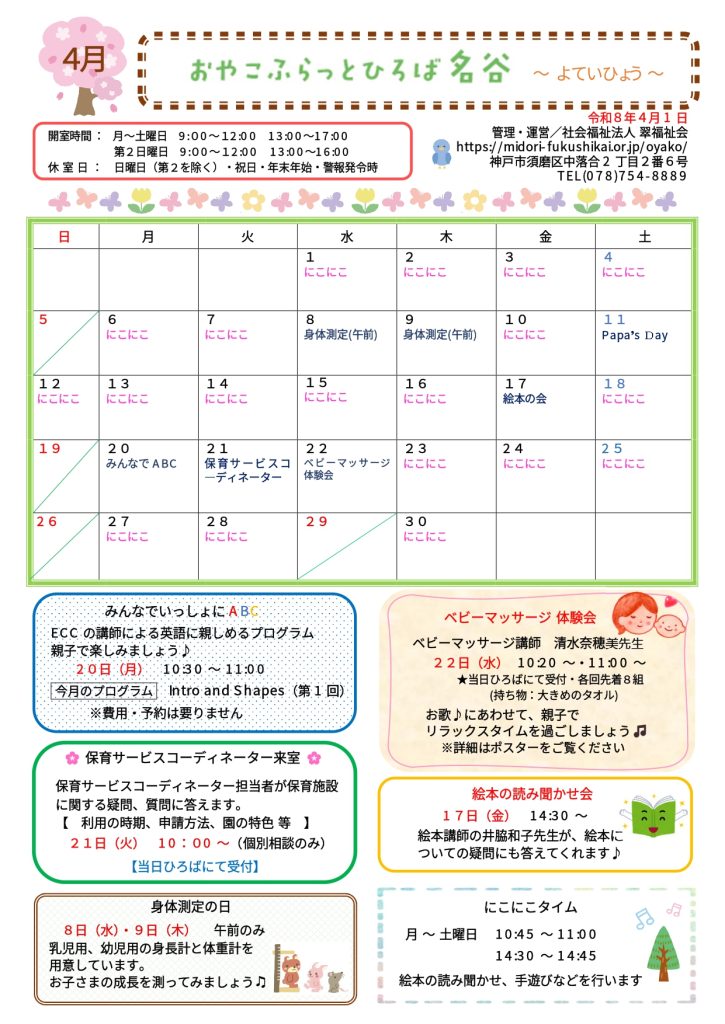 おやこふらっとひろば名谷だより 4月