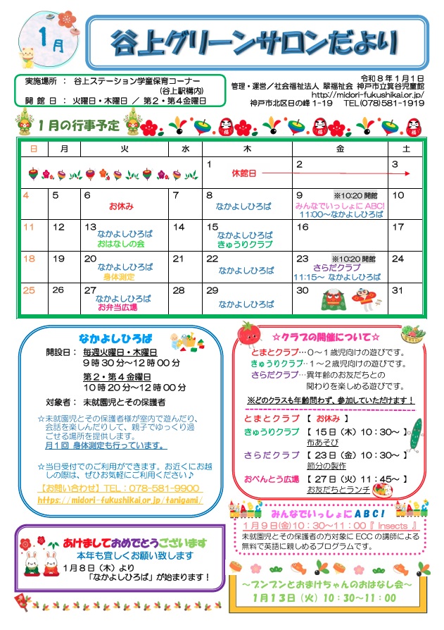 お知らせ グリーンサロン 令和7年度「谷上グリーンサロンだより R8.1月号」 2025年12月27日 令和7年度「谷上グリーンサロンだより R8.1月号」を掲載しました。 谷上グリーンサロンだよりR8年1月号 カテゴリーを選択 お知らせ (16) グリーンサロン (21) 選択してください 2025 (15) 2024 (9) 2014 (2)
